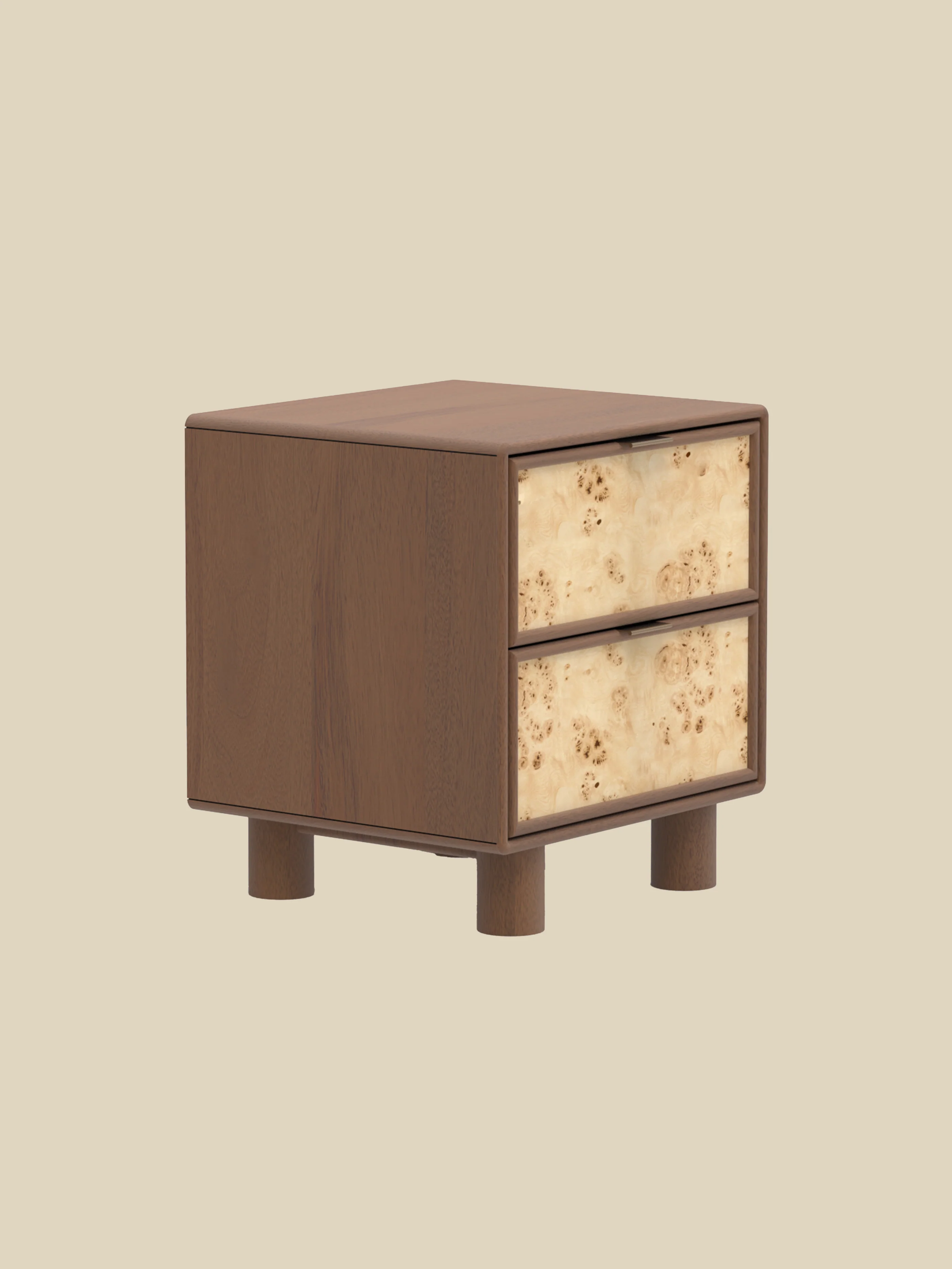 Aurea Burl Two Drawer Bedside Table - Walnut